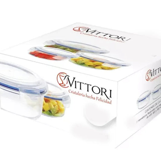 Hermético Redondo de Vidrio con Tapa | 400 ML | Vittori 3004